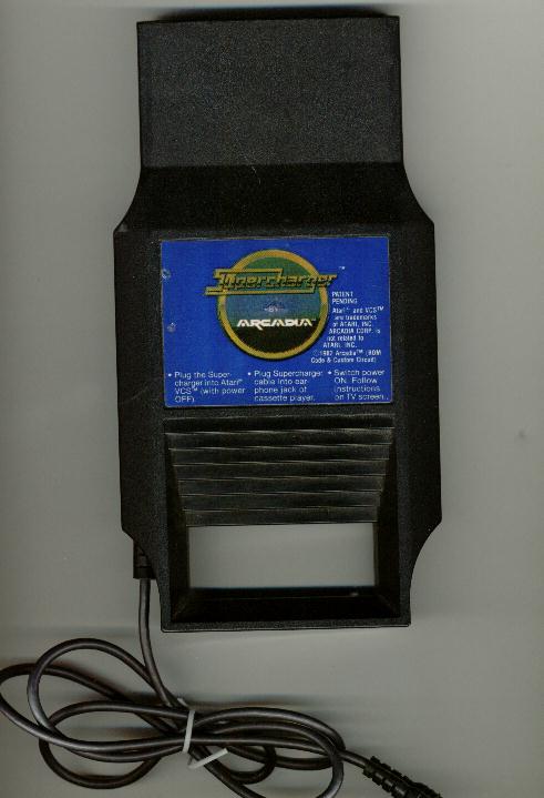 Ciekawostka: Do Atari 2600 można było podłączyć magnetofon za pomocą specjalnego kartridża Supercharger firmy Arcadia. Zaopatrzony był on w przewód zakończony wtykiem mini jack, który podłączało się do wyjścia słuchawkowego zwykłego monofonicznego magnetofonu kasetowego. Na rynku amerykańskim można jeszcze znaleźć kasety z programami wczytywanymi przez ten kartridż. Oto jak wygląda to urządzenie: