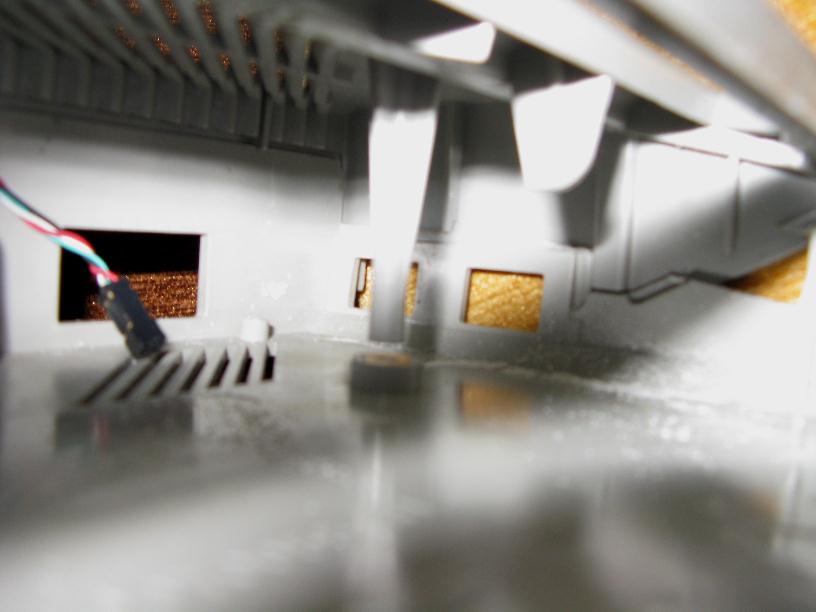 Wypiłowałem więc odpowiedni otwór nad portami dżojstika i skróciłem wewnątrz górnej obudowy "stalaktyt" do mocowania obydwu połówek. Ubyła więc jedna śrubka i obudowa się "rozdziawiała", ale i na to znalazł się sposób. Oto zdjęcie przedstawiające wynik prac (niestety, tylko kilka zdjęć mi zostało).