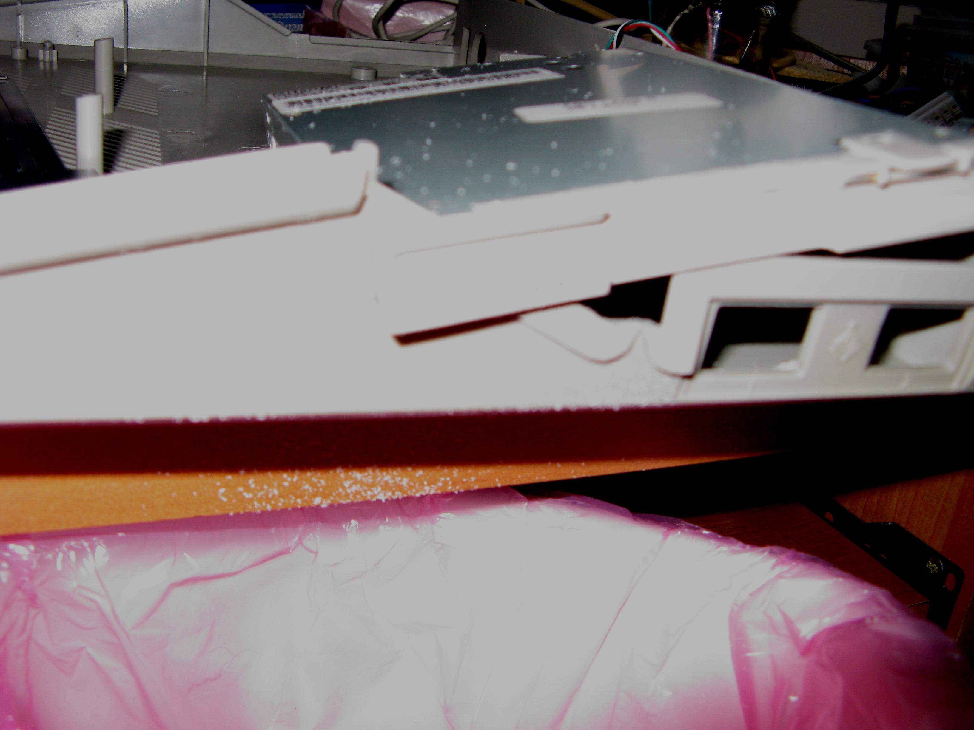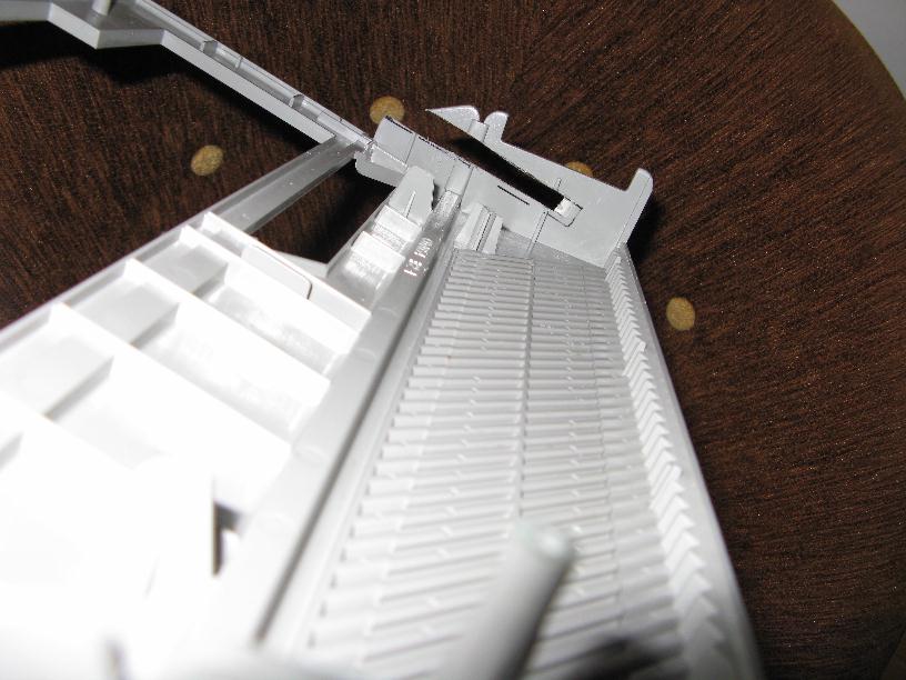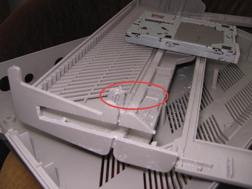 Odcinamy też słupek mocujący i płaski występ ogranicznika klawiatury, co widać na poniższym zdjęciu: