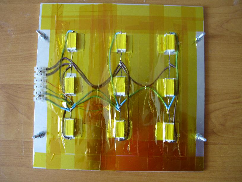 Stół ogrzewa 9 rezystorów 10W połączonych równolegle. Stół przy zasilaniu 12V pobiera 10,8A co daje moc zasilania 130W. Jest to nieco za mało. ale po nakryciu stołu kartką papieru w czasie rozgrzewania pozwala na osiągnięcie temperatury 100 stopni po 15min.