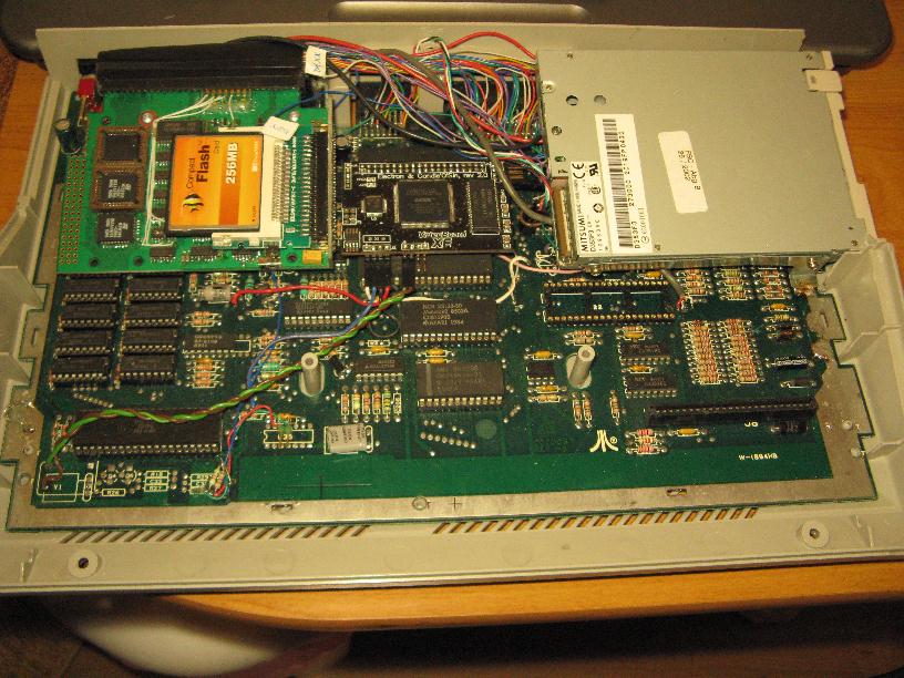 Pewnego pięknego dnia dostałem od mego nieżyjącego już Kolegi Mariusza Geislera interfejs stacji dyskietek Karin Maxi. Miałem też w swoich rupieciach napęd FDD od laptopa, więc postanowiłem wmontować całość do wnętrza Atarynki. Nadawały się do tego wyłącznie modele XE, bo w XL nie było miejsca na napęd.
